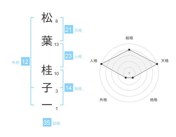 松葉 桂子一さんの天格は21画の5点!
