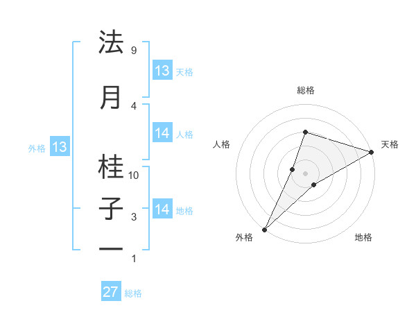 法月 桂子一さんを姓名の画数から五運を鑑定