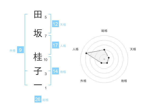 田坂 桂子一さんを姓名の画数から五運を鑑定