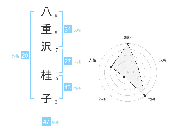 八重沢 桂子さんを姓名の画数から五運を鑑定