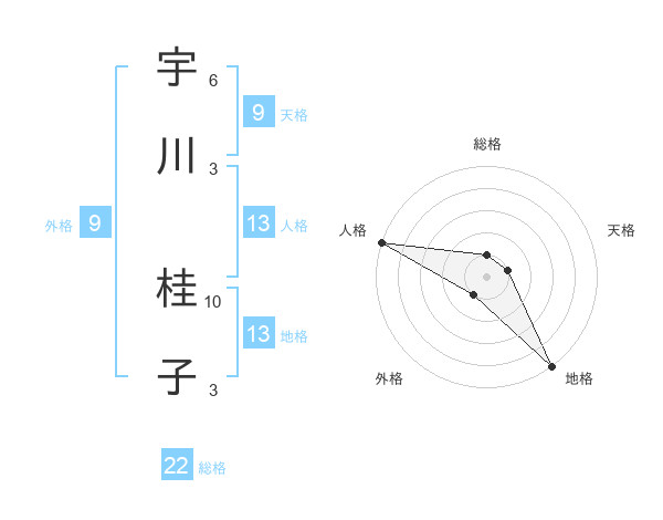 宇川 桂子さんを姓名の画数から五運を鑑定