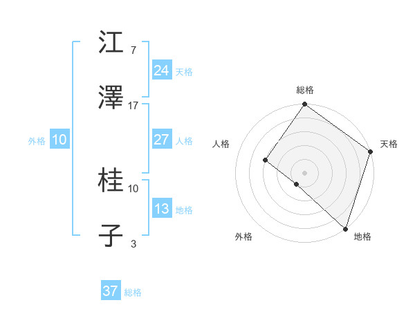 江澤 桂子さんの総格は37画の5点!