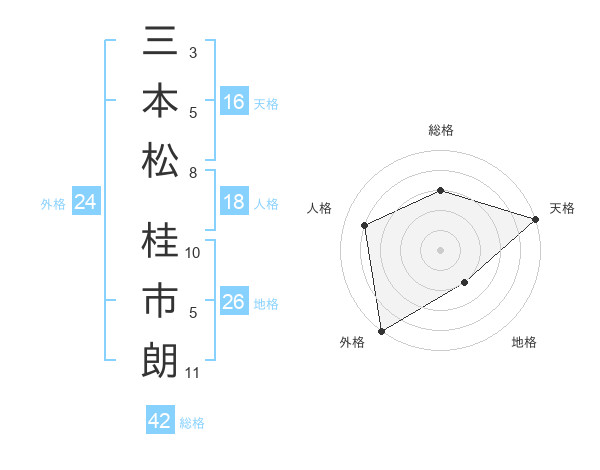 三本松 桂市朗さんを姓名の画数から五運を鑑定