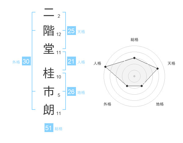 二階堂 桂市朗さんの総格は51画の3点!