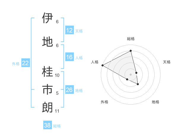 伊地 桂市朗さんの総格は38画の4点!