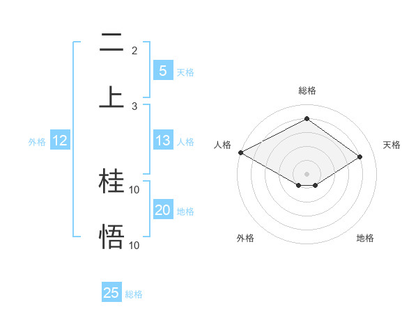 二上 桂悟さんの総格は25画の4点!