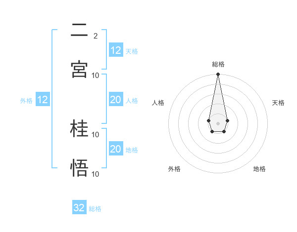 二宮 桂悟さんを姓名の画数から五運を鑑定