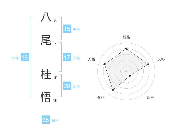 八尾 桂悟さんを姓名の画数から五運を鑑定