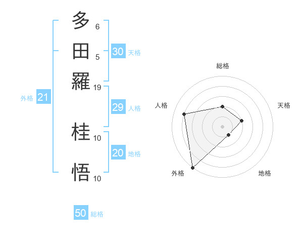 多田羅 桂悟さんの総格は50画の2点!