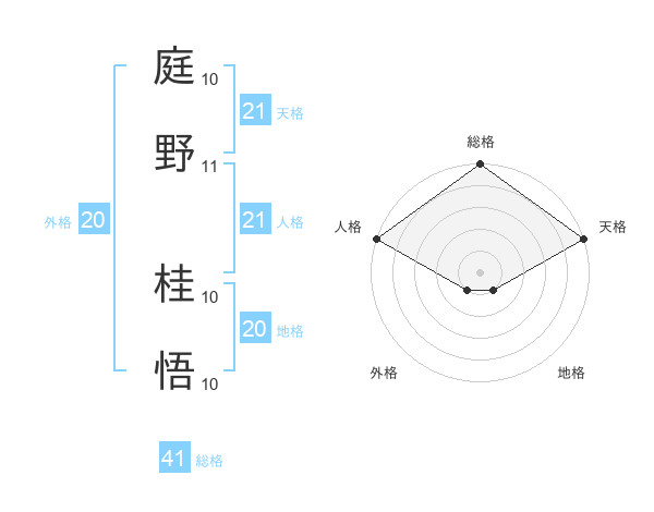 庭野 桂悟さんの人格は21画の5点!