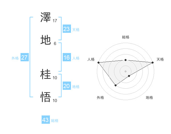 澤地 桂悟さんを姓名の画数から五運を鑑定