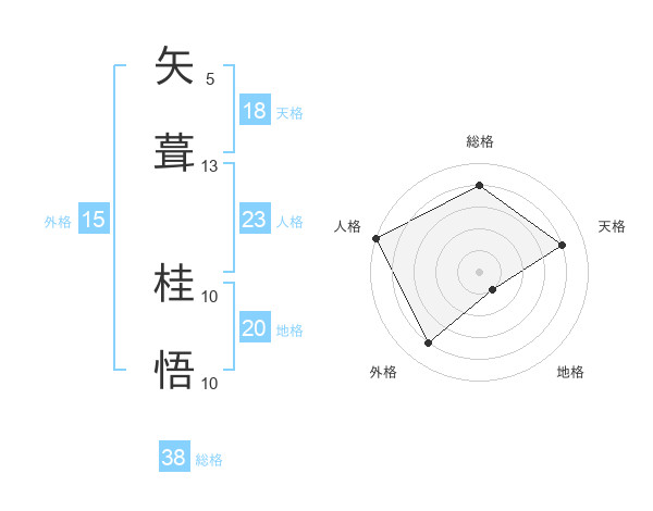 矢葺 桂悟さんの総格は38画の4点!