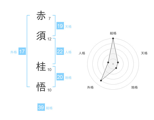 赤須 桂悟さんの総格は39画の5点!