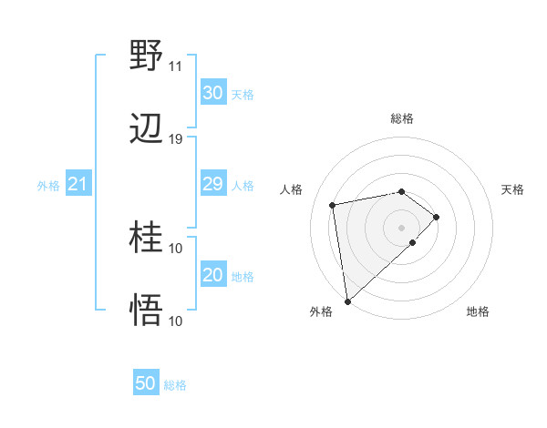 野辺 桂悟さんを姓名の画数から五運を鑑定