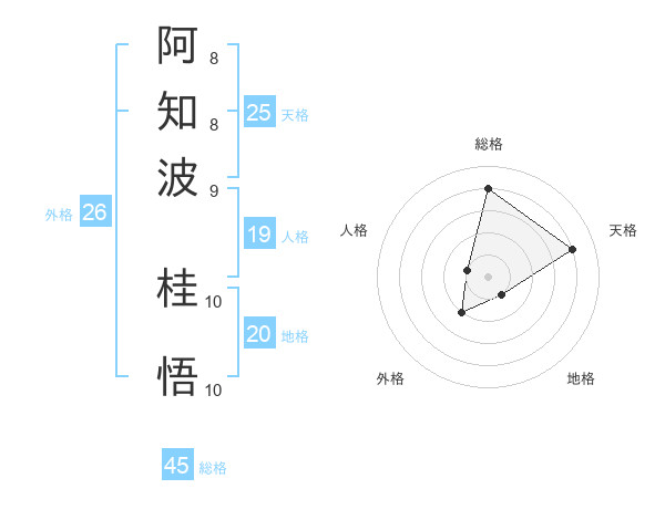 阿知波 桂悟さんの総格は45画の4点!