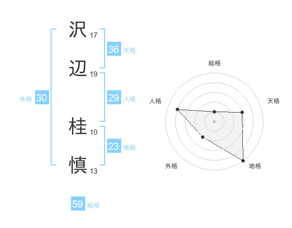 沢辺 桂慎さんの総格は59画の1点!