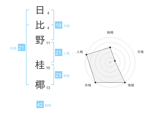 日比野 桂椰さんの外格は21画の5点!