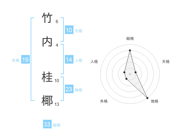 竹内 桂椰さんの総格は33画の4点!