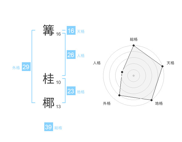 篝 桂椰さんの総格は39画の5点!