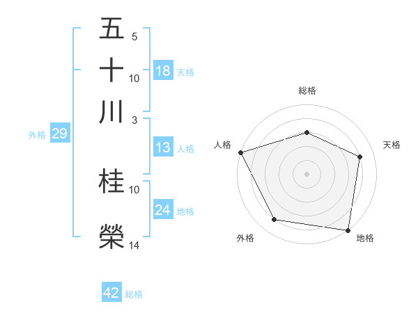 五十川 桂榮さんを姓名の画数から五運を鑑定
