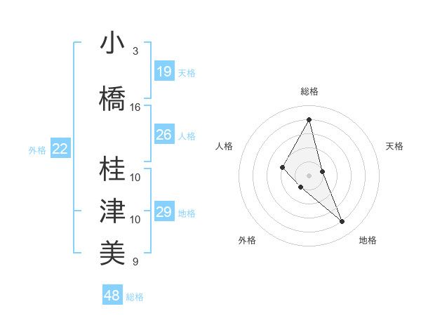 小橋 桂津美さんを姓名の画数から五運を鑑定
