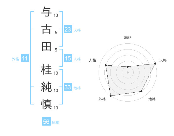 与古田 桂純慎さんを姓名の画数から五運を鑑定