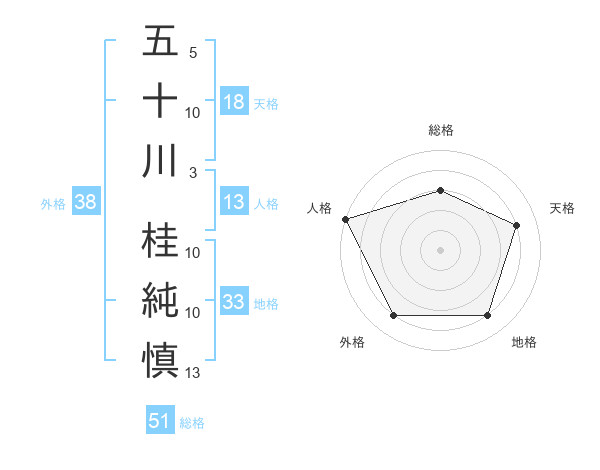 五十川 桂純慎さんを姓名の画数から五運を鑑定