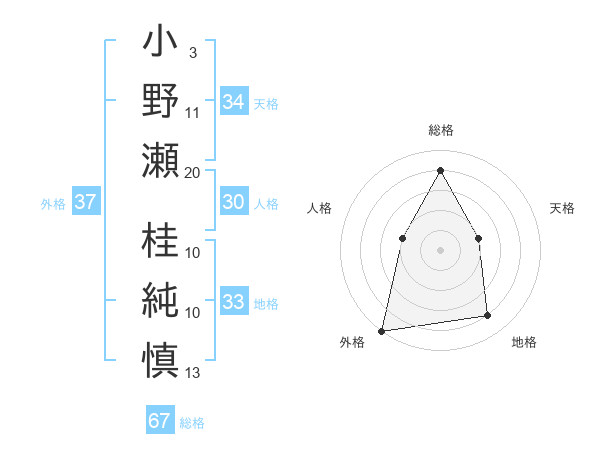 小野瀬 桂純慎さんを姓名の画数から五運を鑑定