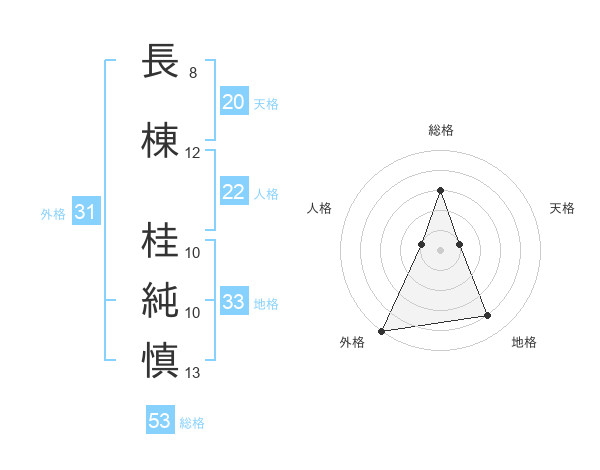 長棟 桂純慎さんの総格は53画の3点!