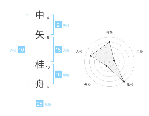 中矢 桂舟さんを姓名の画数から五運を鑑定