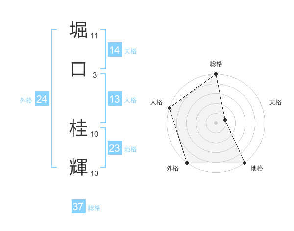 堀口 桂輝さんを姓名の画数から五運を鑑定