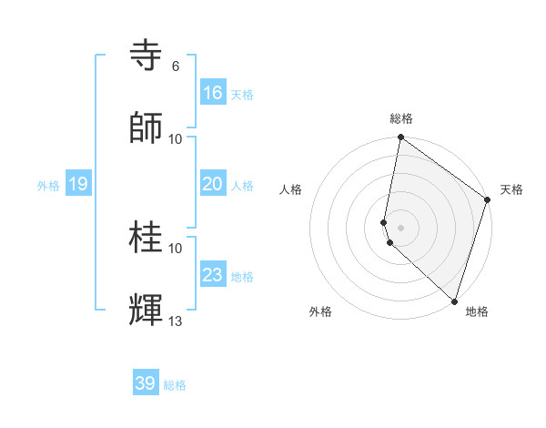 寺師 桂輝さんの総格は39画の5点!