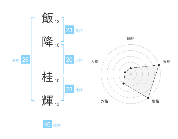 飯降 桂輝さんの天格は23画の5点!