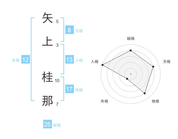 矢上 桂那さんを姓名の画数から五運を鑑定