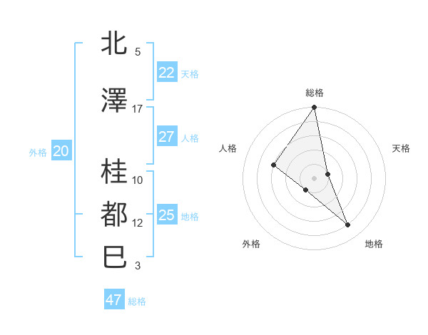 北澤 桂都巳さんの総格は47画の5点!