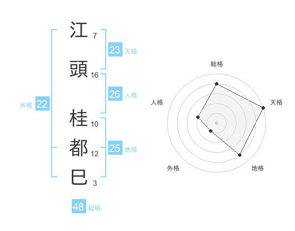 江頭 桂都巳さんを姓名の画数から五運を鑑定