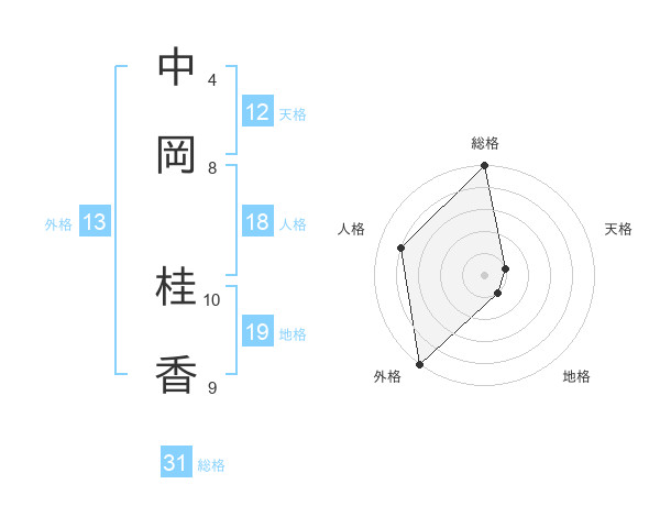 中岡 桂香さんを姓名の画数から五運を鑑定