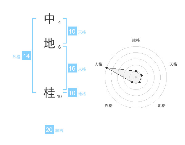 中地 桂さんの総格は20画の1点!