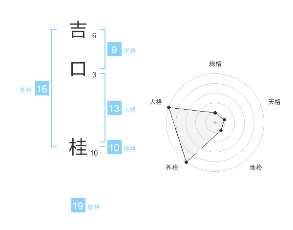 吉口 桂さんの外格は16画の5点!
