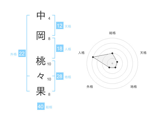 中岡 桃々果さんを姓名の画数から五運を鑑定
