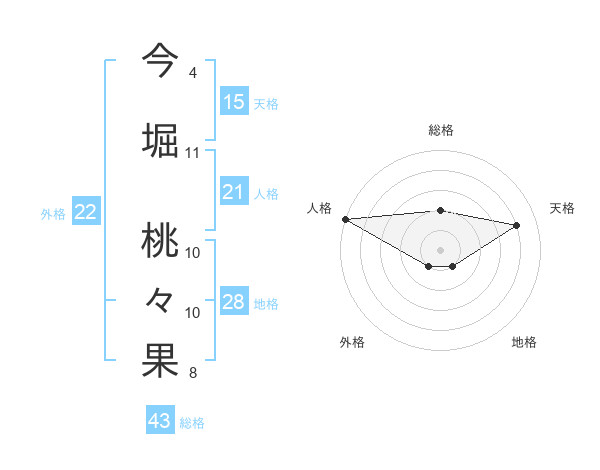 今堀 桃々果さんを姓名の画数から五運を鑑定