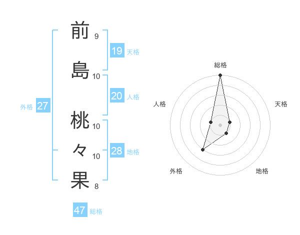 前島 桃々果さんを姓名の画数から五運を鑑定