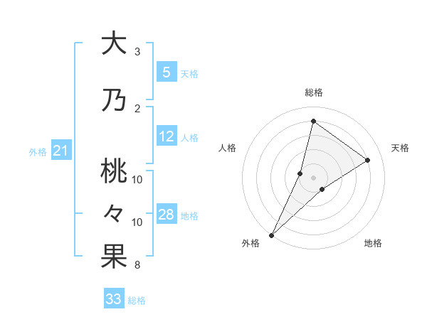 大乃 桃々果さんを姓名の画数から五運を鑑定