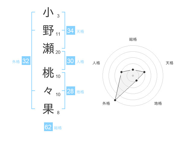 小野瀬 桃々果さんを姓名の画数から五運を鑑定