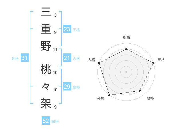 三重野 桃々架さんの総格は52画の4点!