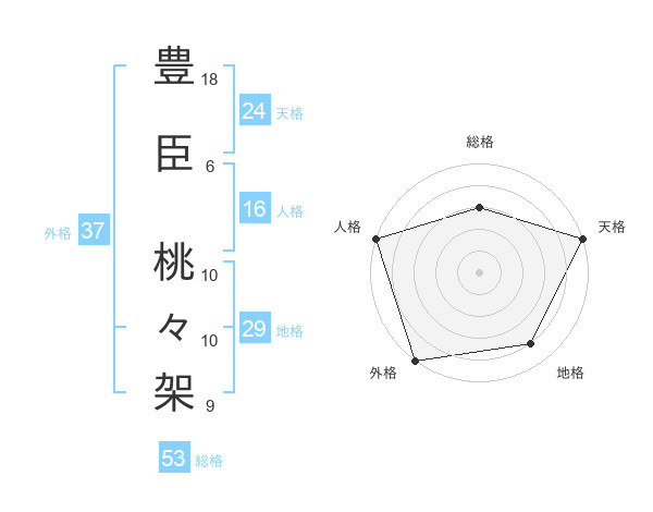 豊臣 桃々架さんを姓名の画数から五運を鑑定