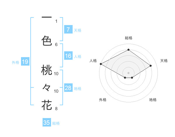 一色 桃々花さんの総格は35画の4点!