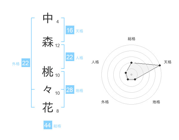 中森 桃々花さんを姓名の画数から五運を鑑定