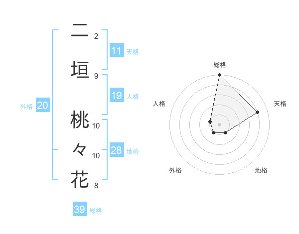 二垣 桃々花さんを姓名の画数から五運を鑑定
