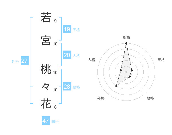 若宮 桃々花さんを姓名の画数から五運を鑑定